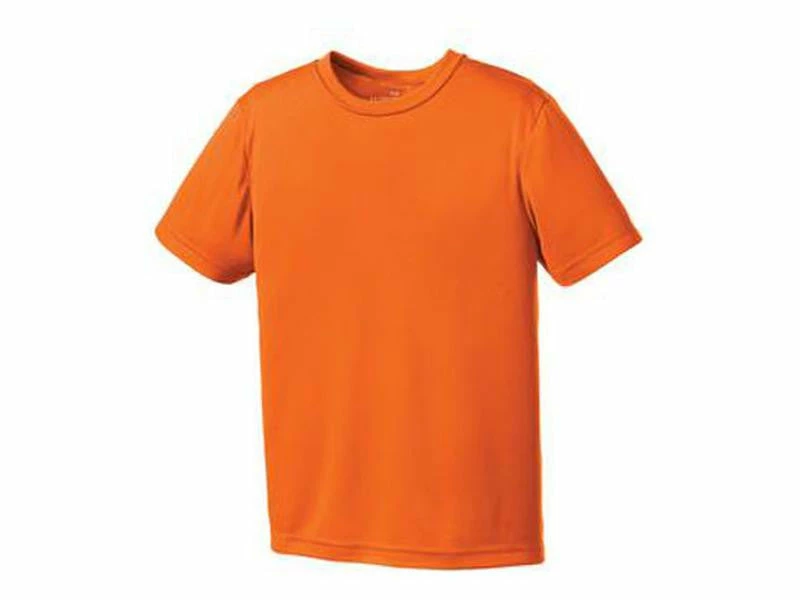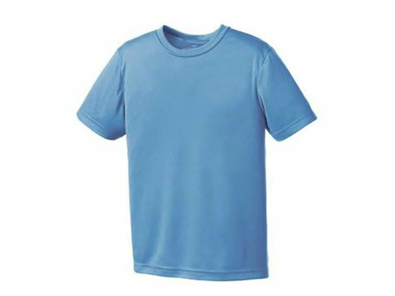 - 6.3-oz, 100% polyester jersey knit