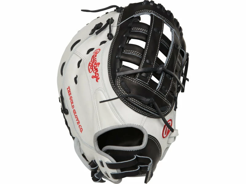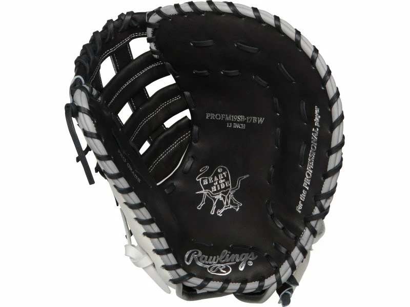 The Rawlings Heart of the Hide Softball PROFM19SB-17BW 13″ Fastpitch First Base Mitt 13-inch softball first base glove delivers in the clutch, whether fielding bullets hit down the line or having a teammate’s back scooping throws off the mark. Each glove is handcrafted for the fastpitch player, so you won’t find another first base mitt this comfortable, durable, or high-performing.