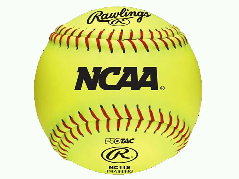 These Rawlings 11″ NCAA youth soft training softballs (NC11S) are yellow with red stitching. These training softballs have a soft poly core and ProTac synthetic leather cover.