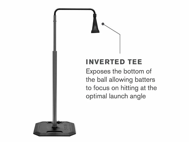 - Inverted tee exposes the bottom of the ball allowing batters to focus on hitting at the optimal launch angle