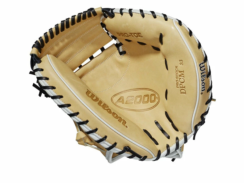 The A2000 CM33 is designed for catchers who call the shots. A thinner toe pad and deep pocket make framing and picking pitches out of the dirt more effortless than ever before. Mitts don’t come any cleaner than this, with a Blonde, Black and White Pro Stock Leather combination that capitalizes on the beauty of simplicity. Simple outlined Bold Logos put the finishing touches on this 33″ model.
